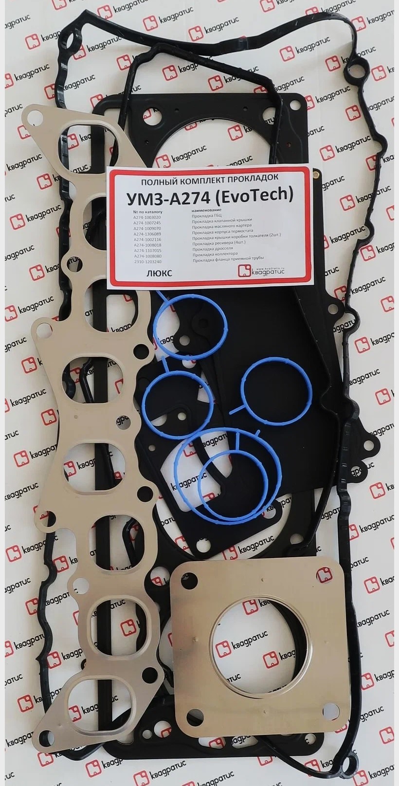KVP-A274-3906022-03 Набор прокладок двигателя ГАЗель NEXT дв. EVOtech 2,7 (полный) Люкс "КВАДРАТИС" КВАДРАТИС компл (вн.18)
